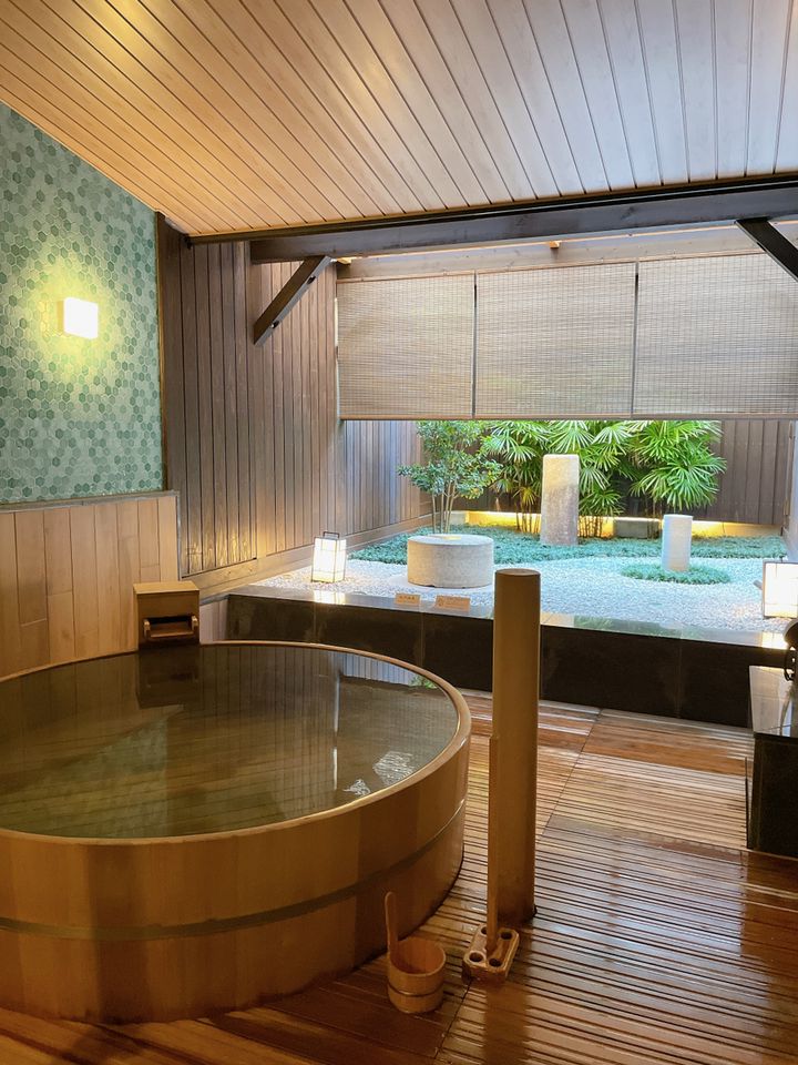 이 교토 숙소의 가장 큰 매력 포인트는 바로 천연온천을 즐길 수 있는 대욕장과 5가지 타입의 개별 전용탕을 모두 무료로 별도의 예약없이 선착순으로 이용할 수 있습니다. 보통 이런 숙소에서 전세탕을 이용하려면 별도의 비용을 지불해야 하지만 이 곳에서는 필요 없다는 말 입니다.