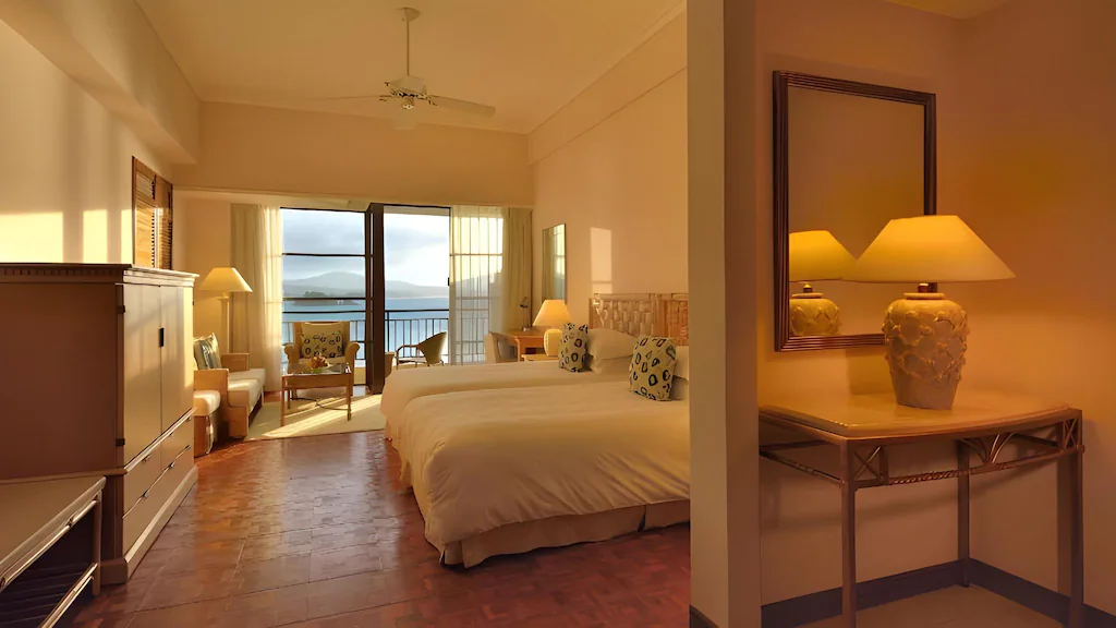 이 오키나와 고급 리조트의 매력은 모든 객실에 발코니 또는 테라스가 마련 되어 있다는 점 입니다. 문을 열면 펼쳐지는 오키나와의 푸른 바다 풍경은 그야말로 힐링 그 자체 입니다. 특히, 호텔 바로 앞에는 오키나와에서 가장 아름다운 해변 중 하나로 손꼽히는 니라이 비치가 펼쳐져 있어, 객실에서 나와 바로 바다를 즐길 수 있습니다.